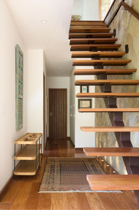 O projeto da Casa da Pedra consistiu em uma reforma que ampliou consideravelmente o programa original. Antes composta por uma suíte e dois quartos, a casa passou a ter quatro suítes, além de salas de TV, varanda e uma cozinha ampliada. O partido manteve a linguagem arquitetônica existente, marcada pelo revestimento em pedra, preservando assim sua identidade. Para a execução, foi utilizada estrutura metálica, o que possibilitou maior agilidade no processo construtivo e assegurou a harmonia entre o novo e o existente.